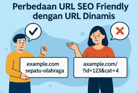 Perbedaan URL SEO friendly dengan URL dinamis terletak pada struktur, keterbacaan, dan dampaknya pada SEO. Blogger maupun mahasiswa sebaiknya selalu menggunakan URL SEO friendly agar artikel lebih mudah ditemukan dan CTR meningkat.
